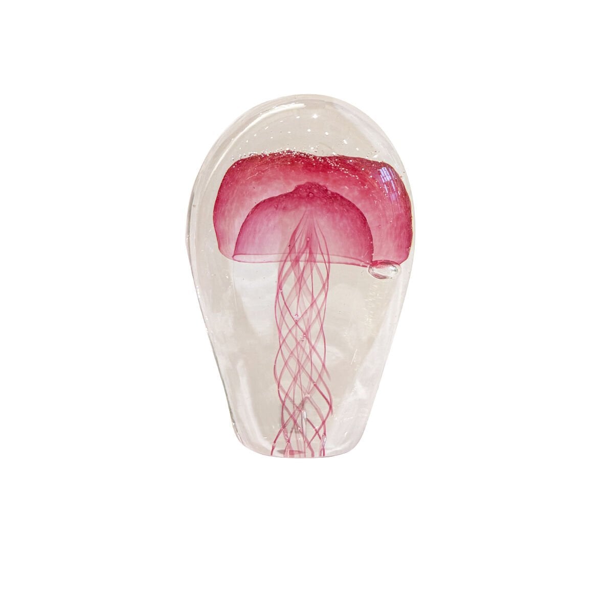 Encased within a monolithic volume of optical clear crystal, a delicate blush pink jellyfish form appears to float in stillness. Hand-blown and individually shaped by master artisans, the inner composition creates a mesmerising sense of depth, as if time is suspended within the glass.