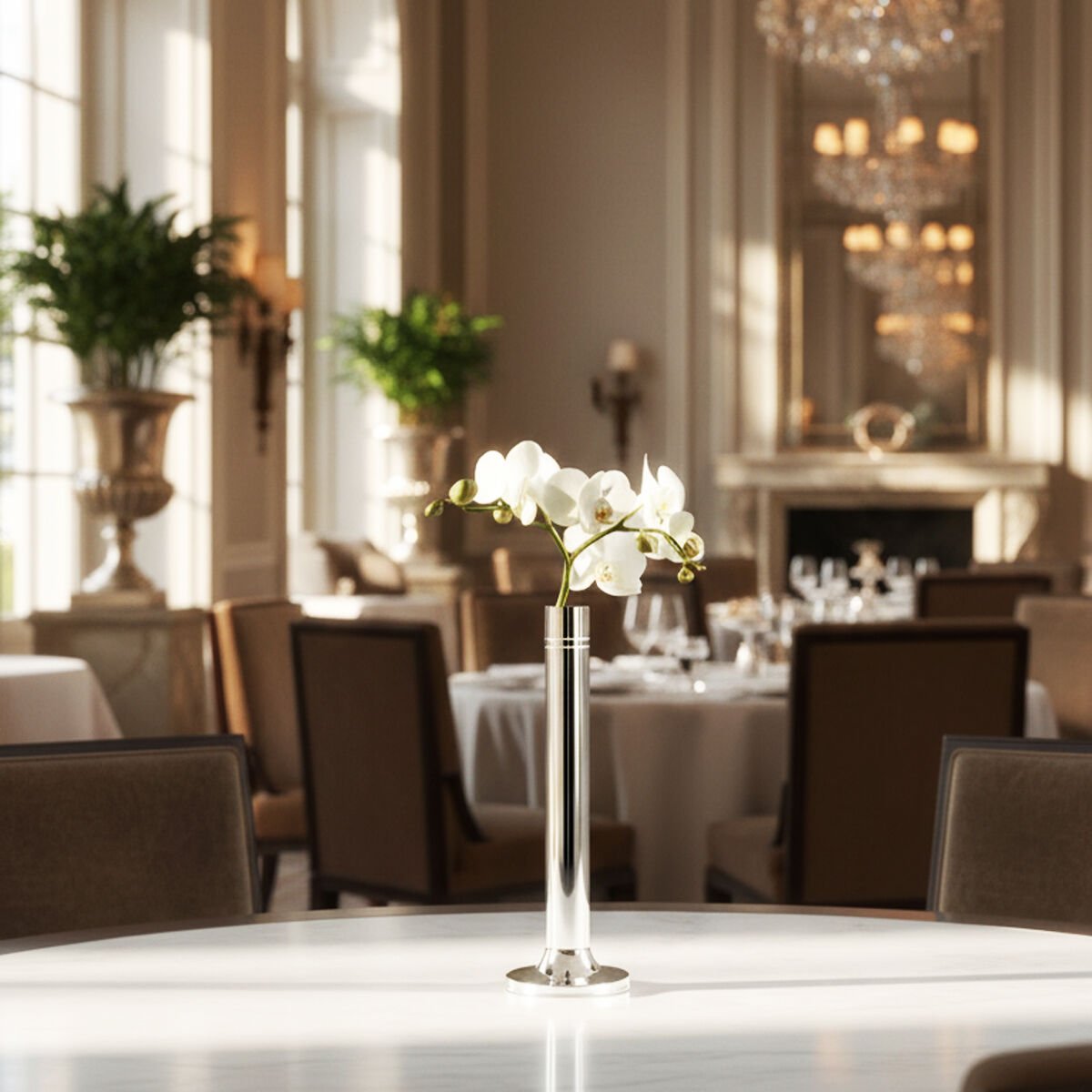 Handcrafted for The Grand Line Collection, the GRAND Clove Holder – VR 122 transforms a traditional table accessory into a refined vertical object. Its slender pedestal form and micron silver-plated copper body create a luminous and elegant presence while offering a dedicated presentation for cloves and aromatic spices. Designed for luxury hospitality, fine dining service and ceremonial table settings, it adds a subtle yet distinctive detail to the overall composition.