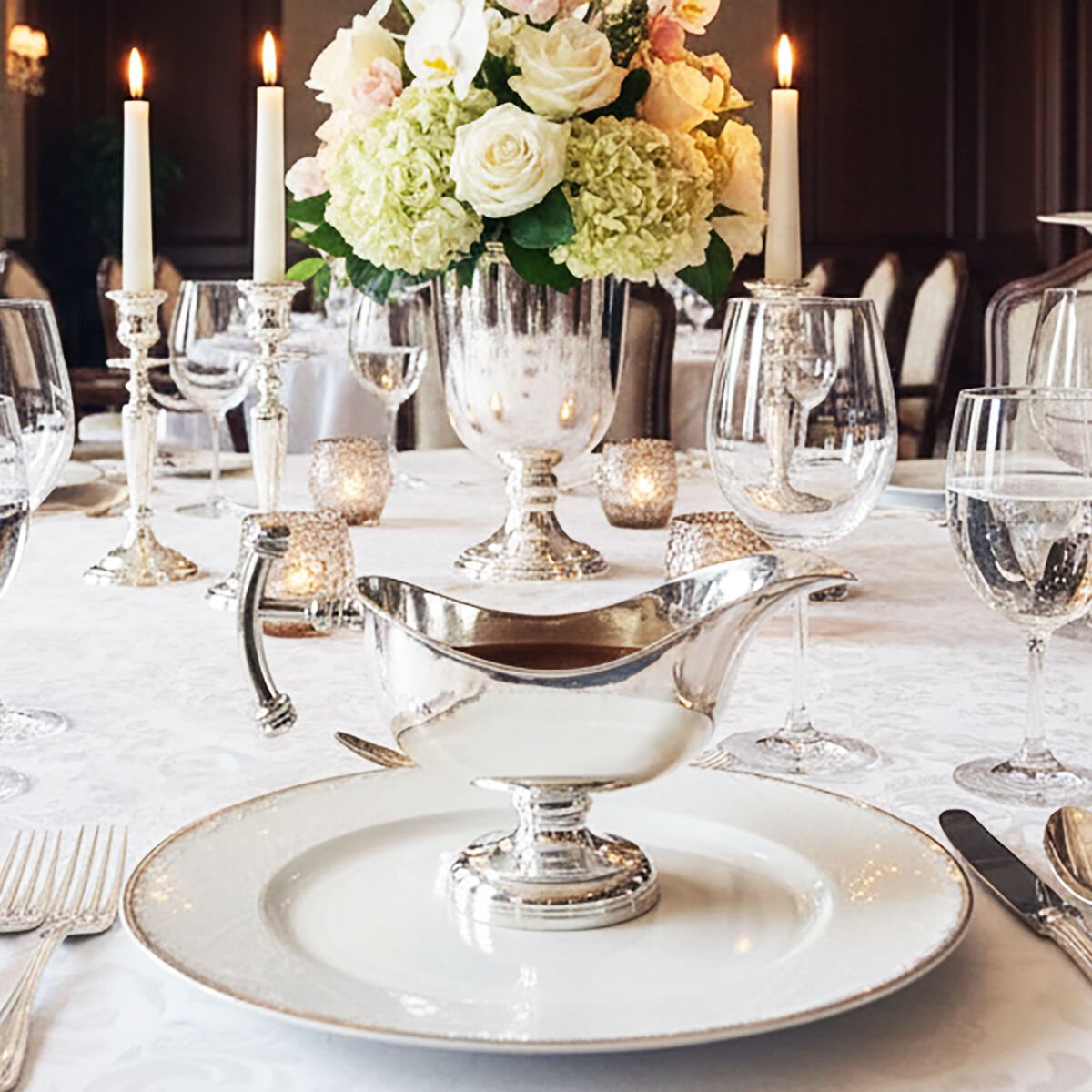 - Strong visual presence within fine dining table settings