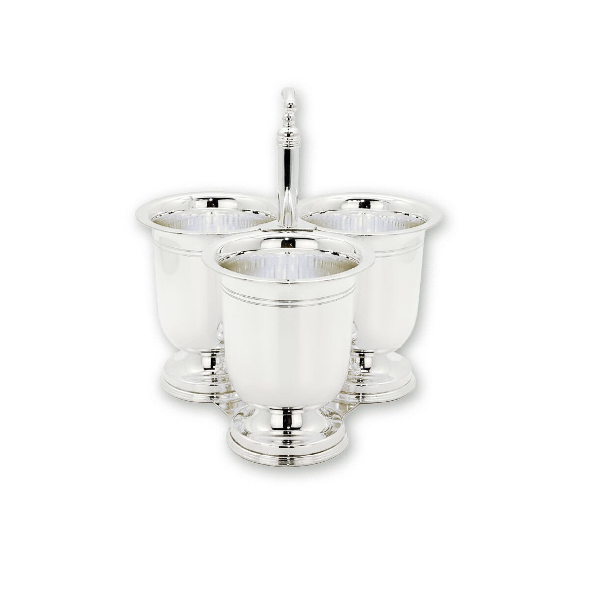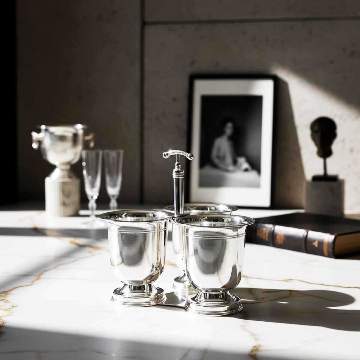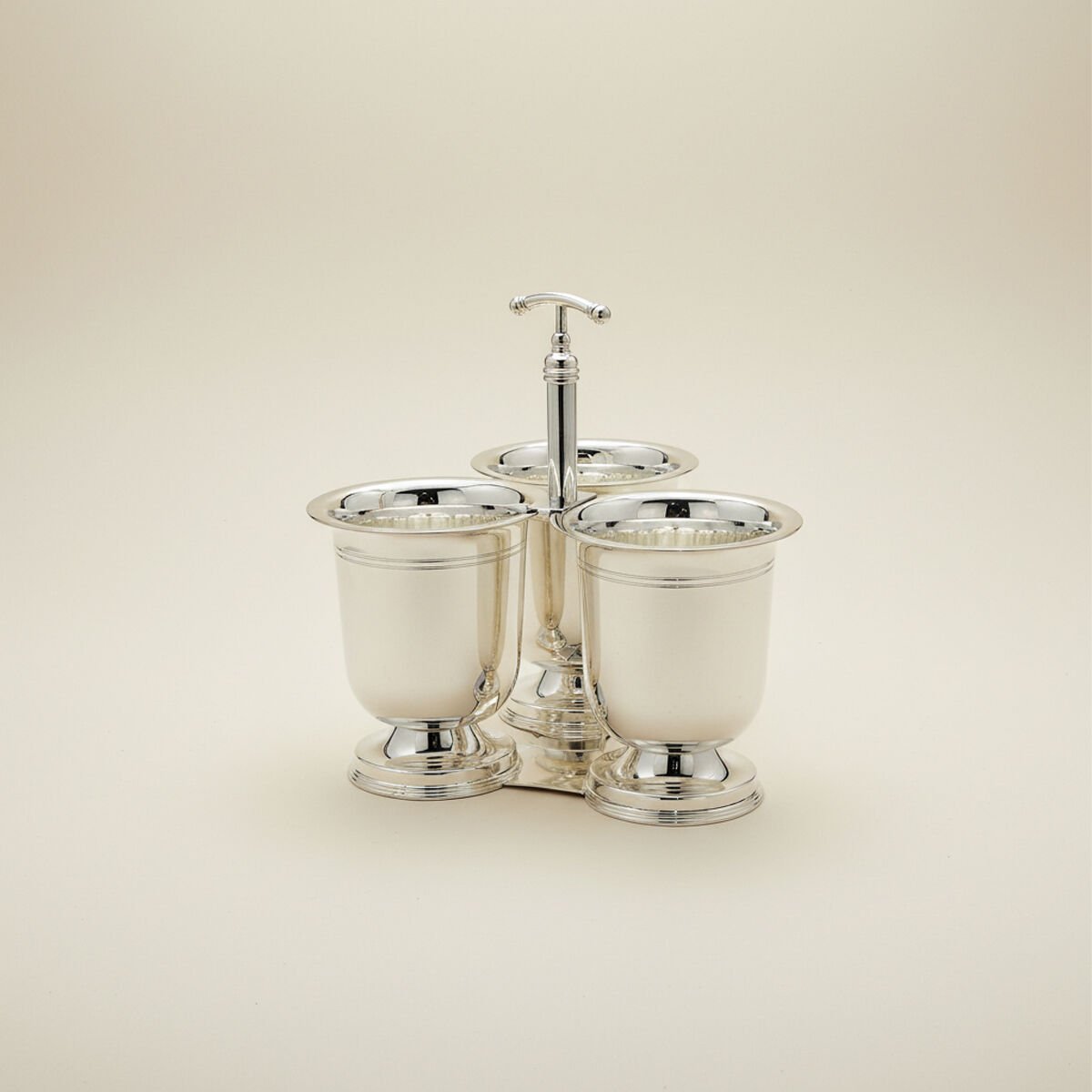 Handcrafted for The Grand Line Collection, the GRAND Trio Holder – VR 113 is designed to carry and present three elements within a single balanced and sculptural structure. The micron silver-plated copper body is enhanced by a brushed steel handle, creating a refined material contrast while ensuring ergonomic handling during service. Developed for luxury hospitality, fine dining operations and elegant buffet settings, it improves service efficiency while adding a strong architectural presence to the table.